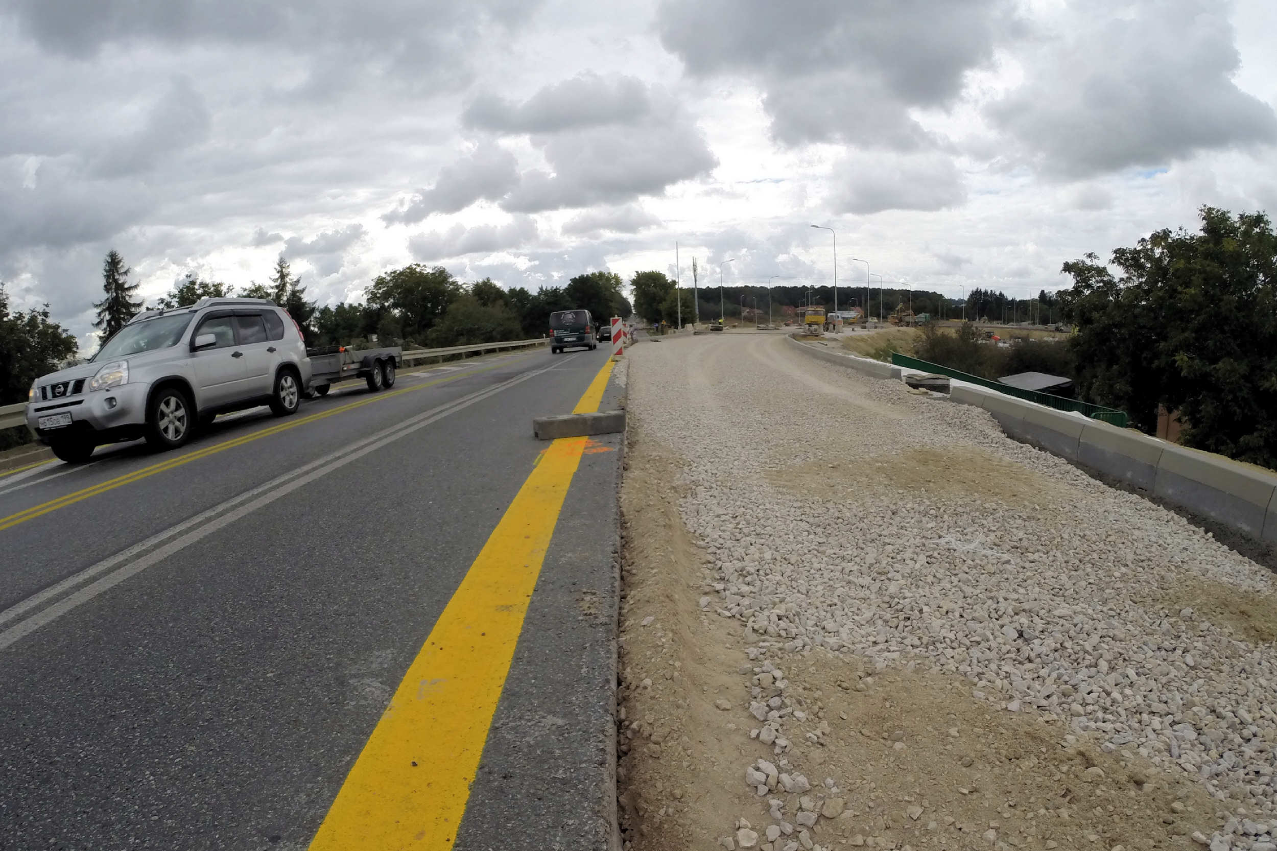 Od czwartku 1 września zaczną obowiązywać zmiany w organizacji ruchu na DK19 w Konopnicy. Około południa, w miejscu gdzie budowana w ciągu S19 zachodnia obwodnica Lublina włącza się do obecnego przebiegu drogi krajowej, kierowcy pojadą tymczasowym objazdem. Zmierzając od Lublina tuż za wiaduktem w lesie wjedziemy na objazd ulokowany po wschodniej stronie jezdni i na starą drogę wrócimy tuż za miejscem gdzie łączy się z nią zachodnia obwodnica Lublina (na zdjęciu wjazd na objazd od strony Kraśnika). Przełożenie ruchu umożliwi wykonanie włączenia w budowaną trasę, a prace potrwają ok. 6 tygodni.