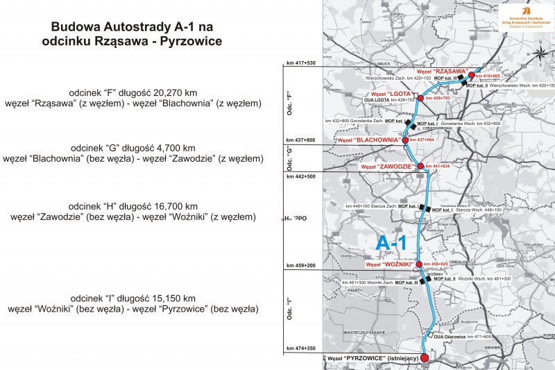 Dzisiejsze rozstrzygnięcia dla Odcinków H i I kończą pierwszy etap postępowań na budowę czterech odcinków autostrady A1 pomiędzy Pyrzowicami a Rząsawą.