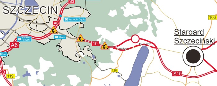 Kierowcy poruszający się DK nr 10 na trasie Szczecin – Stargard napotkają również utrudnienia w rejonie węzła Kijewo. Trwa remont nawierzchni DK nr 10 (ulica Zwierzyniecka/Szosa Stargardzka), jezdnie w obu kierunkach są zwężone. Prace potrwają tam do końca przyszłego tygodnia.