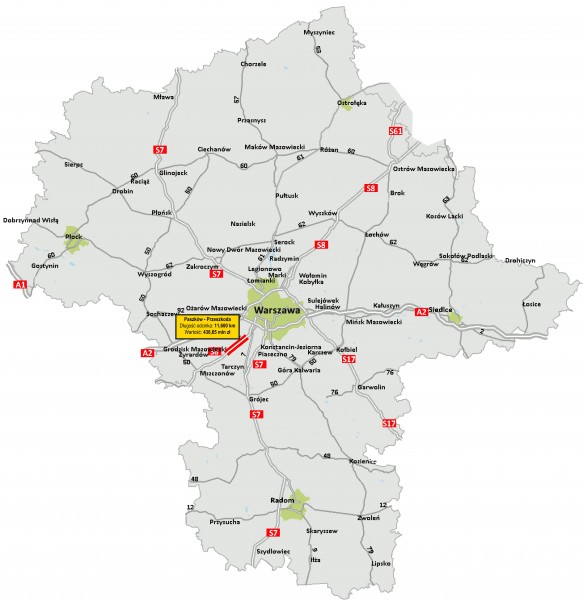 Archiwum 2015Odcinek o długości 11,6 km powstanie w ciągu 31 miesięcy od podpisania umowy, prace zakończą się w IV kwartale 2018 roku. Kontrakt na zaprojektowanie i rozbudowę drogi jest wart 436,65 mln zł - przewiduje kontynuację projektowania i rozbudowę istniejącej drogi krajowej do parametrów trasy ekspresowej. Zakres prac podpisanej przez warszawski oddział GDDKiA obejmuje m.in. likwidację przejść dla pieszych w poziomie drogi, budowę skrzyżowań bezkolizyjnych czy ekranów akustycznych. Projekt przewiduje wymianę wszystkich warstw drogi od podbudowy przez wiążącą do ścieralnej. Droga będzie budowana w technologii betonowej.
