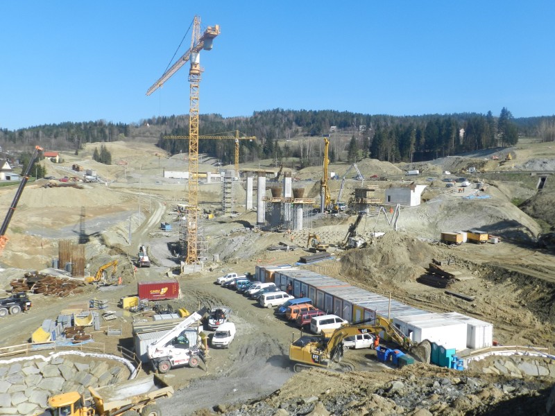 Część podpór obiektów mostowych na budowanym odcinku S7 pomiędzy Lubniem i Rabką Zdrojem jest już widoczna coraz wyżej nad powierzchnią gruntu. Szczególnie widoczne są one teraz i będą w przyszłości na odcinku III od Skomielnej Białej do Chabówki. 3 km 396 metrów czyli 55% tego odcinka będzie przebiegało po wiaduktach i estakadach. Takie rozwiązania inżynierskie wymusiło tu ukształtowanie terenów górskich.