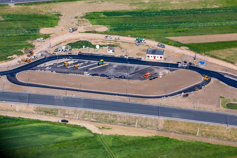 Aktualnie trwają prace na drogach dojazdowych. Wykonywane są kolejne warstwy - podbudowa, warstwa wiążąca i ścieralna oraz umocnienia poboczy i nawierzchnie żwirowe.