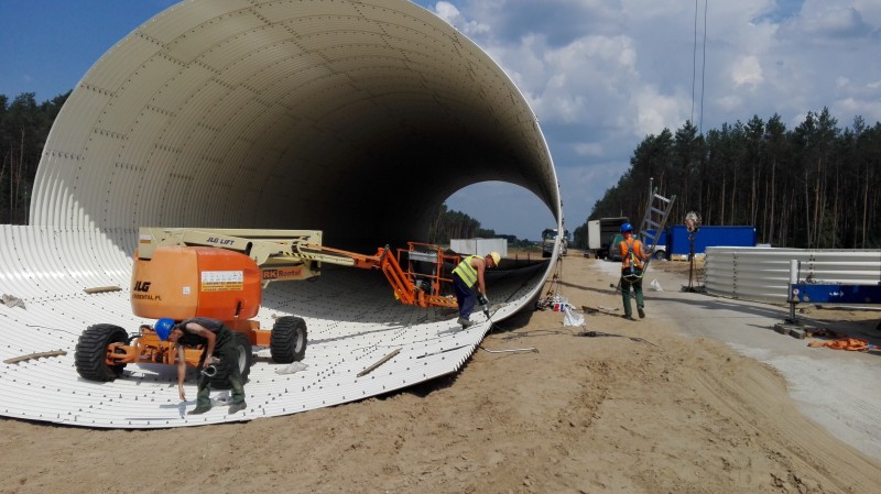 Archiwum 2018Obecnie prowadzone są zaawansowane prace przy budowie obiektów inżynierskich (wiadukty, mosty, przejścia dla zwierząt) oraz Miejsc Obsługi Podróżnych (MOP). Realizowane są liczne prace ziemne: wyrównywanie terenu, wykonywanie nasypów i ich wzmocnienie oraz wymiana gruntów. Trwają również roboty przy układaniu pierwszych warstw nawierzchni powstającej drogi ekspresowej oraz prace w branży melioracyjnej, wodno-kanalizacyjnej, elektroenergetycznej i gazowej.