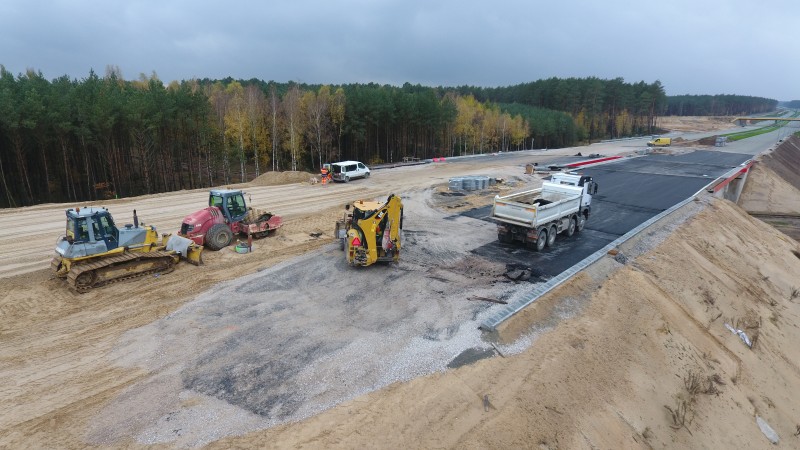 Wykonawcy prowadzą też prace zmierzające do skomunikowania poszczególnych odcinków trasy S5, będących na różnym etapie zaawansowania robót. Planujemy skomunikowanie odcinka 6 (Szubin-węzeł Żnin Północ) z odcinkiem 7 oddawanym do ruchu jeszcze w tym roku. Od węzła Żnin Północ do granicy z województwem wielkopolskim (odc. 7) realizowane są już prace wykończeniowe na obiektach oraz drobne prace ziemne. Trwa również układanie ostatnich warstw nawierzchni oraz prace brukarskie. Zaawansowanie robót na tym odcinku wynosi ponad 93%.