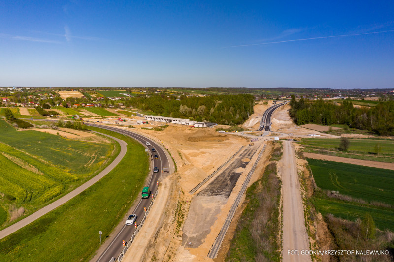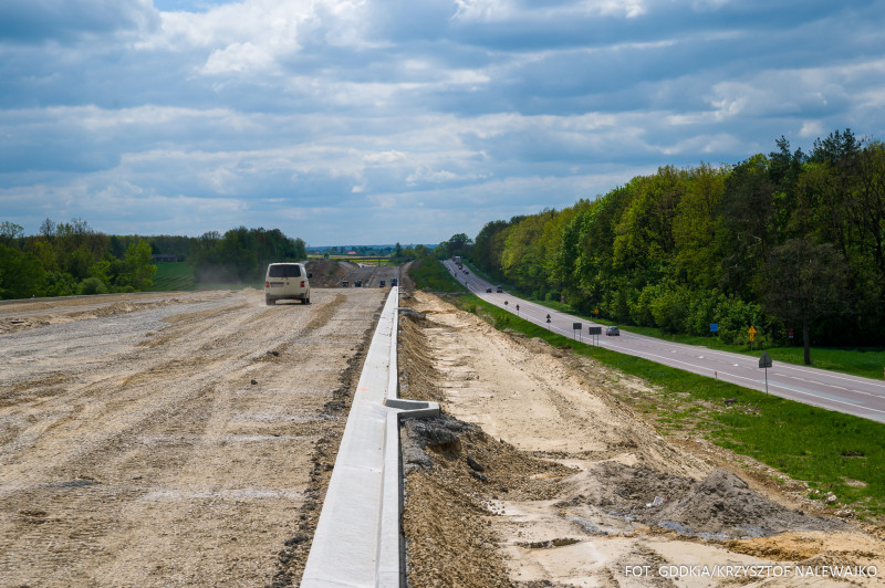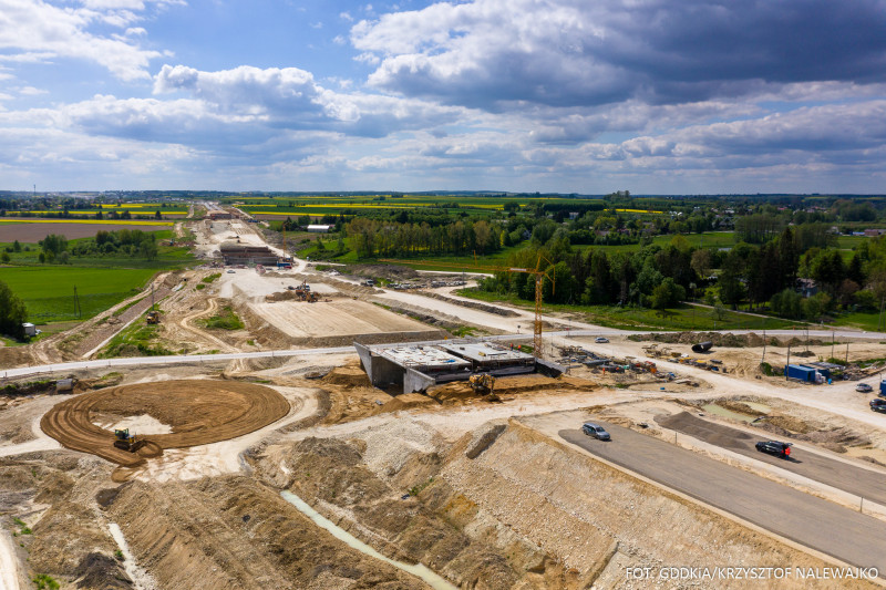 Na 20-kilometrowym odcinku między Niedrzwicą Dużą a Kraśnikiem wykonawca prowadzi prace w pełnym zakresie i we wszystkich branżach. Na fragmencie o długości ok. 13 km ułożona jest już bitumiczna warstwa podbudowy. Trwają też prace przy obiektach mostowych, wykonywaniu nasypów, czy odspajaniu oraz kruszeniu gruntów skalistych. Powstają także zbiorniki retencyjne, czy oświetlenie na przyszłym MOP Rudnik. Zaawansowanie robót przekroczyło półmetek. Zakończenie prac planowane jest w II kwartale przyszłego roku.