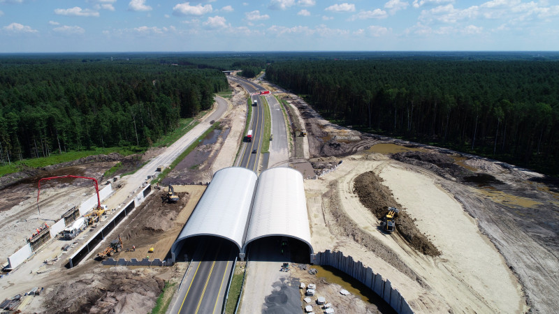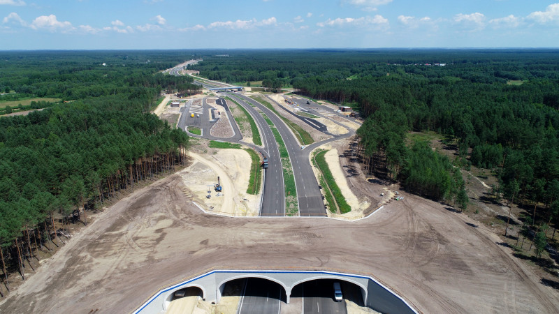 Prowadzone są także prace wykończeniowe w zakresie humusowania, obsiewu trawami skarp i terenów płaskich oraz umocnienia poboczy kruszywem. Ponadto kontynuowany jest montaż barier energochłonnych. Równolegle trwają prace na drogach poprzecznych (drogi gminne, droga krajowa nr 19) oraz dodatkowych jezdniach. Zgodnie z umową zakończenie wszystkich prac planowane jest na kwiecień 2022 r.