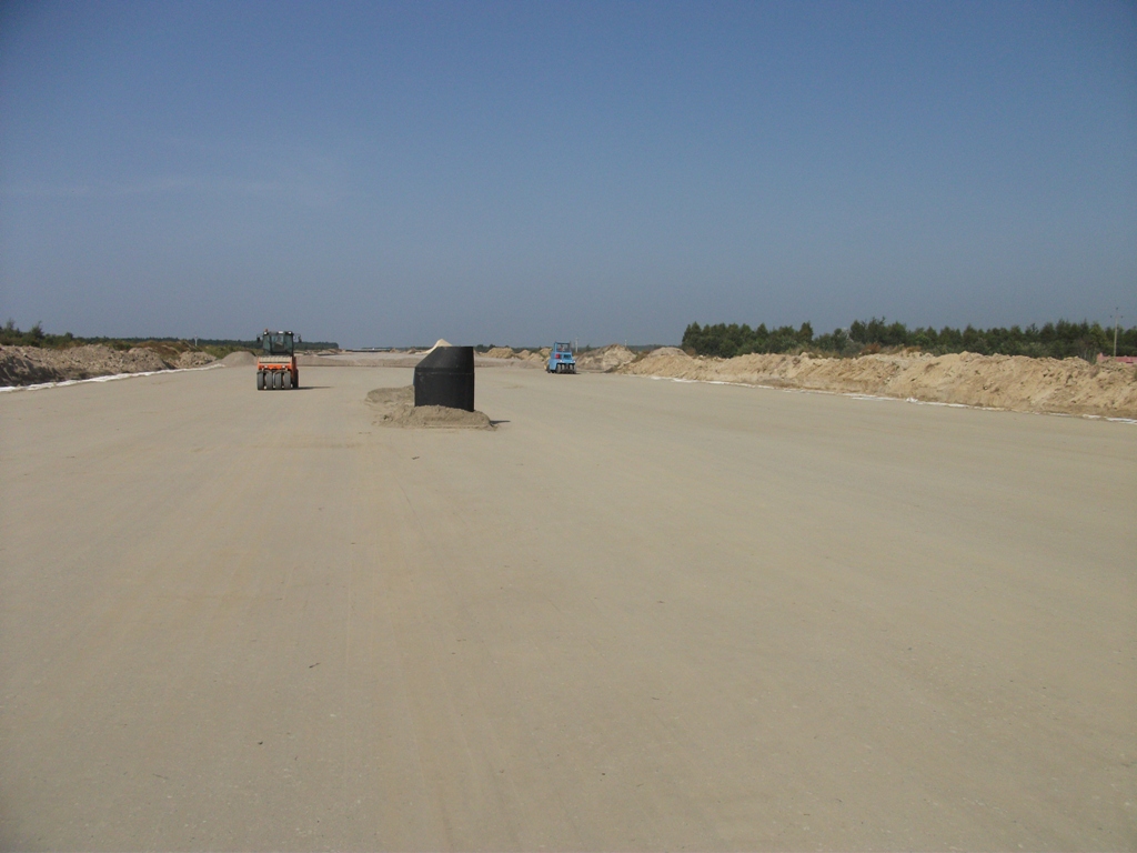 Próbki gruntu pobrane z placu budowy to, zgodnie z orzeczeniem laboratoryjnym i PN-S-02205:1998, pył piaszczysty, który został dopuszczony przez nadzór do wykonywania nasypów zgodnie z wymaganiami normowymi i specyfikacją techniczną. Według tych wymagań pył piaszczysty jest przydatny do dolnych warstw nasypu z zastrzeżeniem, że będzie wbudowywany w miejsca suche lub zabezpieczone od wód gruntowych i powierzchniowych. Taka właśnie sytuacja została potwierdzona w miejscu jego wbudowywania.