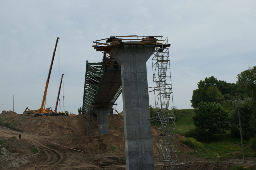 Skrzynkowy dźwigar estakady został podzielony na długości na 19 segmentów montażowych.