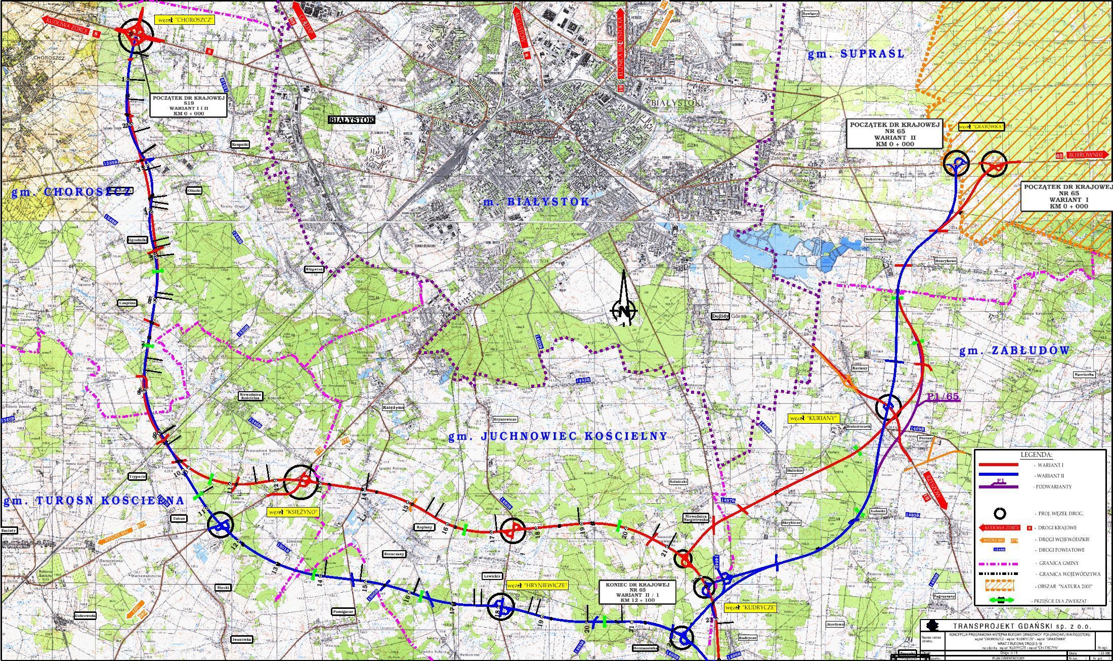 O ile na odcinku od węzła Choroszcz (na krajowej "8") do torów kolejowych Warzawa - Białystok oba warianty różnią się minimalnie, o tyle dalej różnice są już bardzo widoczne. Do tego stopnia, że wariant 1 można nazwać północnym, czyli położonym bliżej miasta oraz przecinającym rzeczkę Czapliniankę. Jest on zgodnym z planem zagospodarowania przestrzennego gminy Choroszcz, ale narusza siedliska priorytetowe, bardzo cenne przyrodniczo.